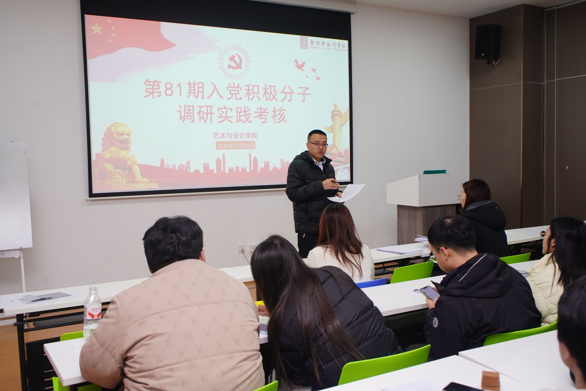 答辩评委现场对各小组表现进行点评,精准指出汇报中的亮点与不足,并明确后续改进方向。院党校工作负责人郑昊进行总结,他强调本次考核答辩的核心目的是锤炼入党积极分子的思想觉悟,校准入党动机;同时寄语全体学员,要始终坚持理论学习与实践探索相融合,做到知行合一,在日常学习生活中主动彰显先锋模范作用,以实干笃行诠释向党组织靠拢的赤诚之心。