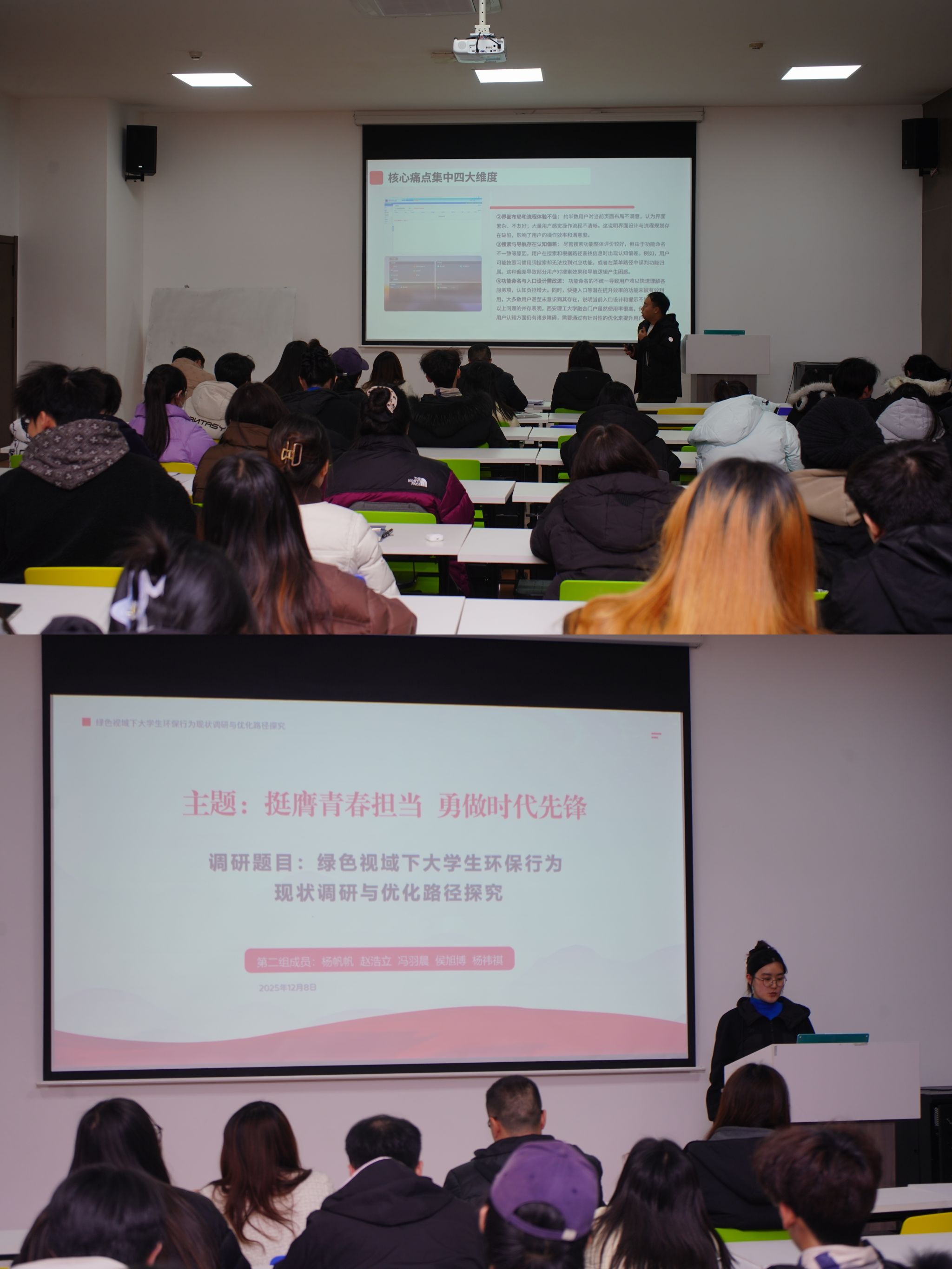 本次答辩共分12个小组依次有序开展,各小组推选1名代表进行现场汇报。调研选题聚焦党建实务与校园发展重点领域,涵盖红色文化传播、校史发展历程等方面。汇报环节中,答辩代表围绕选题背景与现实意义、调研实施路径、调研结果呈现及针对性建议等维度系统阐述,结合志愿服务经历与实践心得提炼,全面呈现了调研实践的过程,充分彰显了入党积极分子在实践中的深度思考与主动探索精神。