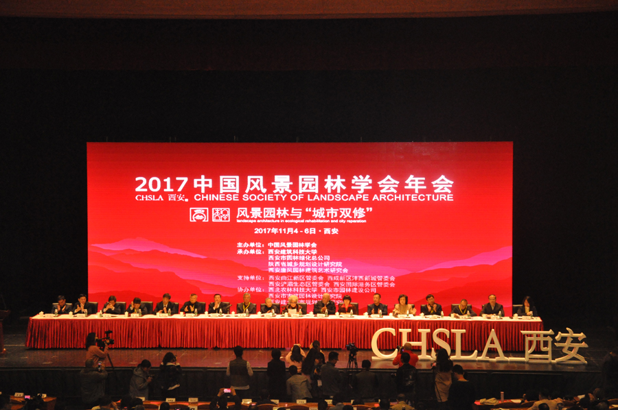 2017中国风景园林学会年会11月4日在西安曲江国际会议中心开幕。来自国内外知名学者专家在此次年会上围绕风景园林与“城市双修”展开研究和探讨。永利集团304环境设计系副系主任闫杰及李皓、乔治、魏琰四位老师应邀参加本次年会活动,并共同参加了本次活动分论坛的报告及学术讨论。通过参加本次年会活动,环艺系教师与同济大学风景园林系、西安建筑科技大学环境设计系、昆明理工大学风景园林系等相关专家级骨干教师商定学术交流的事宜,同时也初步商定2018年5月邀请同济大学风景园林系博士生导师王云才教授来我校作学术报告。