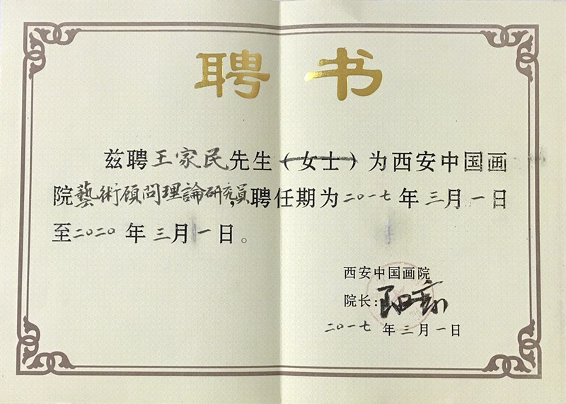 王家民教授被西安中国画院聘为艺术顾问与理论研究员