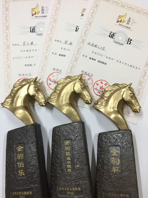 2016年12月,“金驹杯”世界大学生摄影展颁奖盛典在江西上饶隆重举行,我校永利集团304影像动画系摄影专业学生窦乃琪、潘爽分别获得纪实类和艺术类金驹奖,教师彭敏获得金驹伯乐指导教师奖,同时,我校荣获最佳组织院校奖。