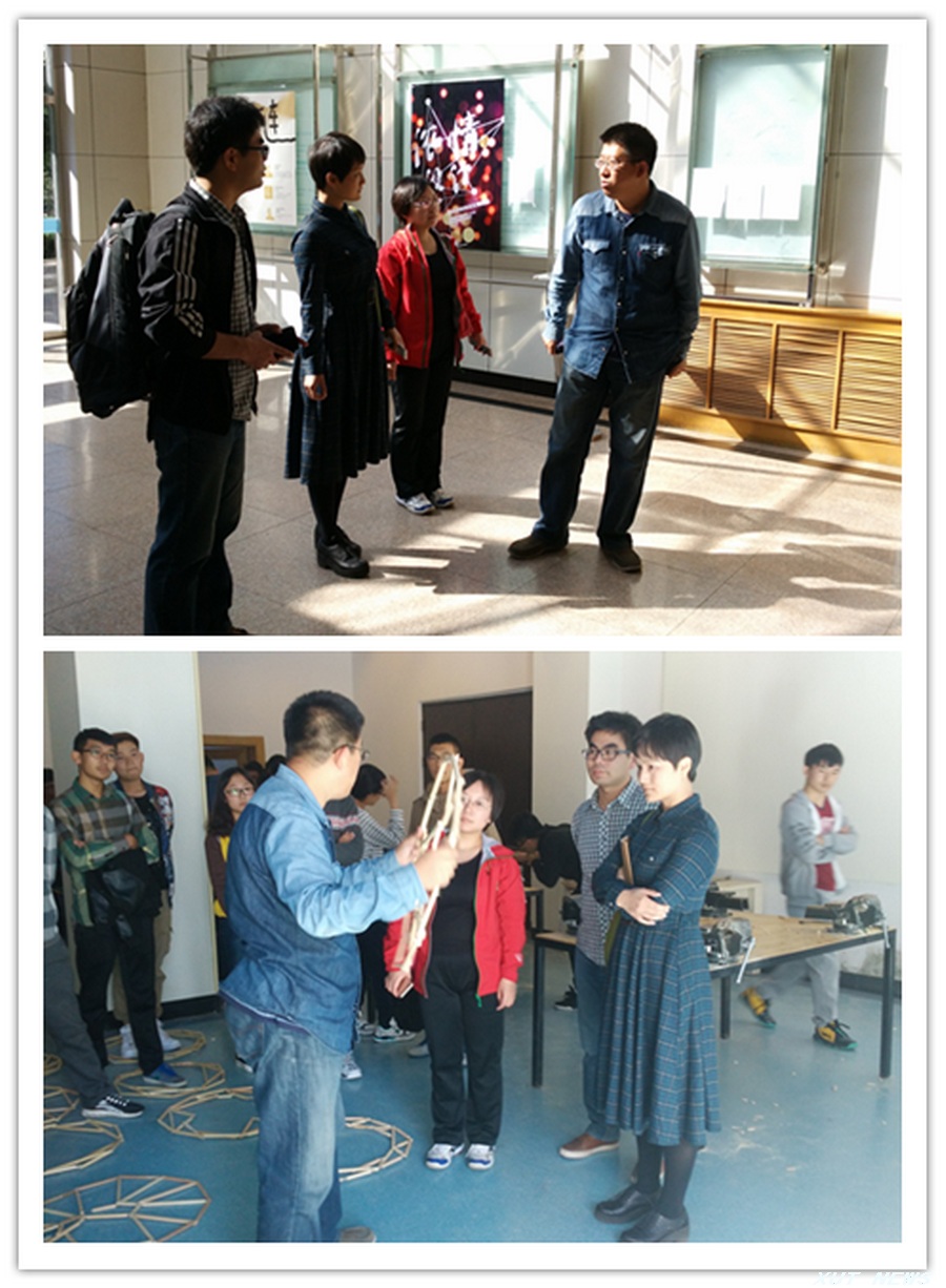 在大连民族大学,大连民族大学设计学院副院长包海默对全程进行了精彩讲解,调研组人员参观了木工、陶艺专业实验室、极具特色的工作室。并深入大学课堂实际教学,听取了基础课的讲授过程,了解和学习了学生课堂学习等实际情况。包海默还分别对工作室的管理、培养方案的制定、大赛的成果的经验作了介绍,并和大家交流了实验室的建设和管理、课程的设置和教学过程的心得与经验。