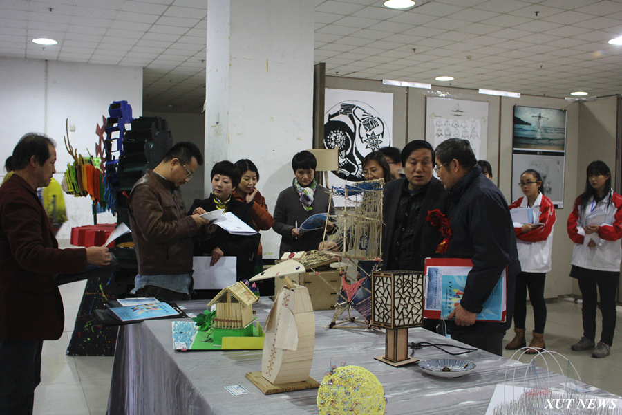 11月25日下午,我校第二十四届大学生金秋科技文化节“视觉创意设计大赛”在曲江校区逸夫科技信息馆广场隆重举行。本次大赛以“融合·共生”为主题,共征集海报招贴设计108件,雕塑设计34件,环艺景观设计29件,产品造型设计29件,工艺品设计56件,DV影像6件,摄影作品41件,书法23幅,共计320余件作品。这些作品涵盖了大学生学习生活的方方面面,充分展示了我校广大青年学生的艺术创作能力。