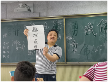 书法课上,赵老师首先以绘画的形式,在黑板上画出了一只鸟的形态,然后写出了“鸟”的象形文字和不同时期的字体变化,为同学们生动展示了“鸟”的字体变化过程,带领同学们认识了汉字书法的起源和发展,并指导大家进行练习。