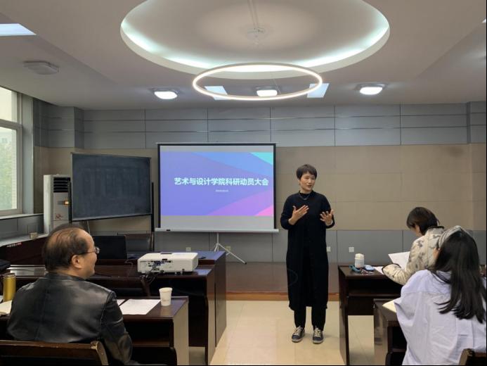 会议邀请了学院获批2019年国家社会科学基金青年项目的乔治老师、获批2018年国家社会科学基金艺术学青年项目的刘小雯老师进行基金申报的交流与分享。两位老师就基金申请中的选题、撰写要点、申请心得、资料准备、申报书修改完善等方面分享了成功经验。动员会上教师们积极踊跃地提出各种问题,与分享的老师们进行了积极的讨论。