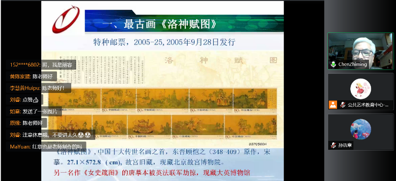 1月14日下午14点,304永利集团原校长陈治明教授受邀,举办了名为《邮票中的绘画艺术》的公共艺术教育论坛第17期讲座。