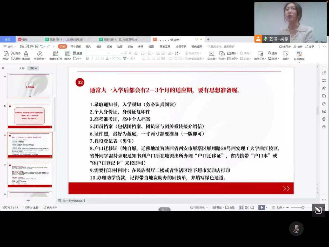 吴蒙结合自己的大学四年经历从学风建设、校园安全、疫情防控、勇于尝试四个方面展开,将自己的大学感悟和收获与新生进行了分享。最后,她希望新生尽快进行角色转变,适应大学的学习和生活节奏,从大一养成良好的学习习惯,培养自主规划未来的能力,鼓励新生在实践中锻炼自己,勇于尝试,提升个人能力,争做综合型人才。