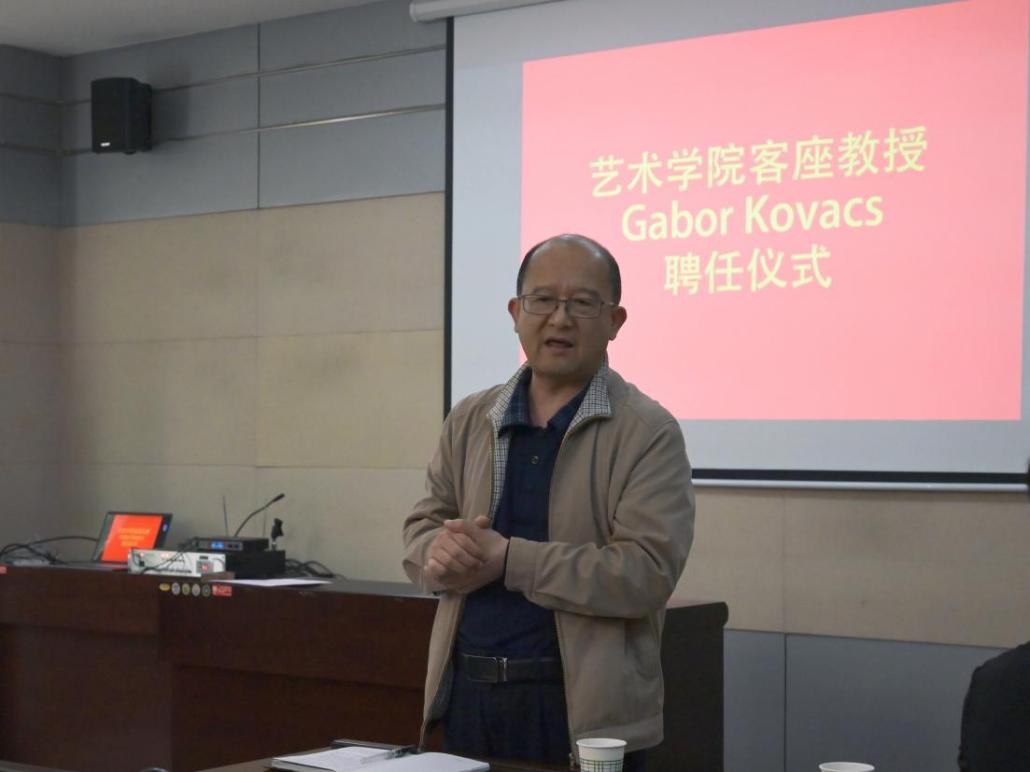 亢文祥对Gabor教授不远万里来到我校授课表示了热烈的欢迎,对其与郭华副教授共同讲授的交互设计课程表示了肯定和赞同,并向他的任职表示了祝贺,希望可以和德国SRH柏林应用科技大学开展多方位的合作,祝愿两校友谊长存。
