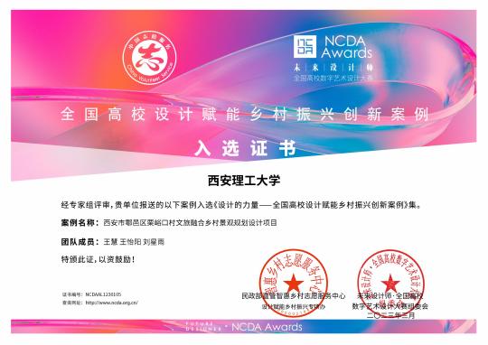 4月8日,未来设计师·全国高校数字艺术设计大赛 (NCDA) 第58·59届中国高等教育博览会“高校教育赋能乡村振兴发展大会”在重庆召开,并举行新书发布会。我校永利集团304《西安市鄠邑区栗峪口村文旅融合乡村景观规划设计项目》成功入选由未来设计师大赛组委会联合重庆交通大学共同主持编写、上海交通大学出版社出版的《设计的力量——全国高校设计赋能乡村振兴创新案例》,并在学习强国平台展出。