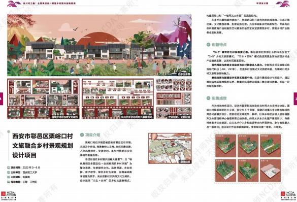 在该书编创期间,共收到近500个申报案例,最后收录了136所高校的142个设计赋能乡村振兴优秀实践案例,较为全面地展示了近年来我国高校设计专业在发挥学科优势赋能乡村振兴及教学创新的成果。此次我院环境设计专业王慧副教授团队 (成员:教师王怡阳、学生刘星雨) 关于依据“三生+五味”的乡村文旅新模式,将栗峪口村打造为民俗风情浓郁、生态环境优美、文化氛围浓厚、配套设 施完善,具有自然科普和服饰文化教育价值的宜居宜游美丽新乡村的项目入选, 既是对学院积极开展设计赋能乡村振兴创新实践,以赛促教,发挥学科竞赛“立 德树人”功能,投身乡村振兴志愿服务屡结硕果的充分肯定,同时也激励广大师 生进一步积极参与创新设计、以专业知识服务城乡经济建设和社会发展,引导师 生弘扬传统美德,传承传统文化,宣传乡村文旅,助力乡村振兴。