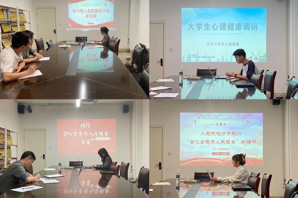 为深入学习贯彻党的二十大精神,按照304永利集团《第76期入党积极分子培训班调研实践活动方案》要求,永利集团304扎实开展入党积极分子培训工作。为检验积极分子培训学习效果,6月20日晚,学院在逸夫楼205会议室组织开展第76期积极分子培训班结业答辩,答辩由学工办主任郑智聪主持,辅导员李铮铮、12位入党积极分子小组代表参加。