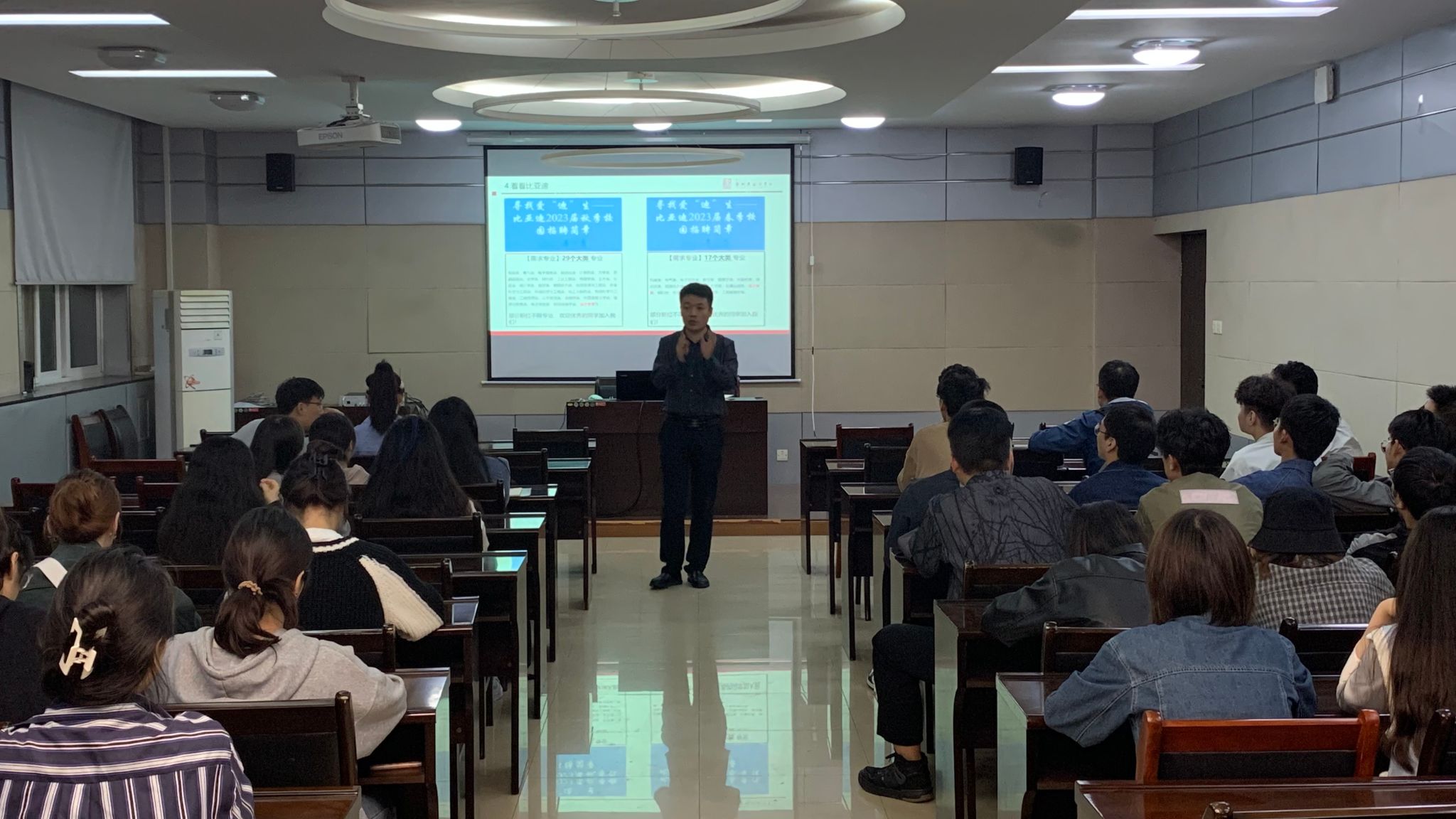 会上,郑智聪从市场经济、就业形势、秋招优势等宏观角度入手,对2024届毕业生就业状况进行分析,再从企业招聘细则、往届毕业生去向等微观角度定位,指导学生做好职业选择、职业规划,实现优质就业。