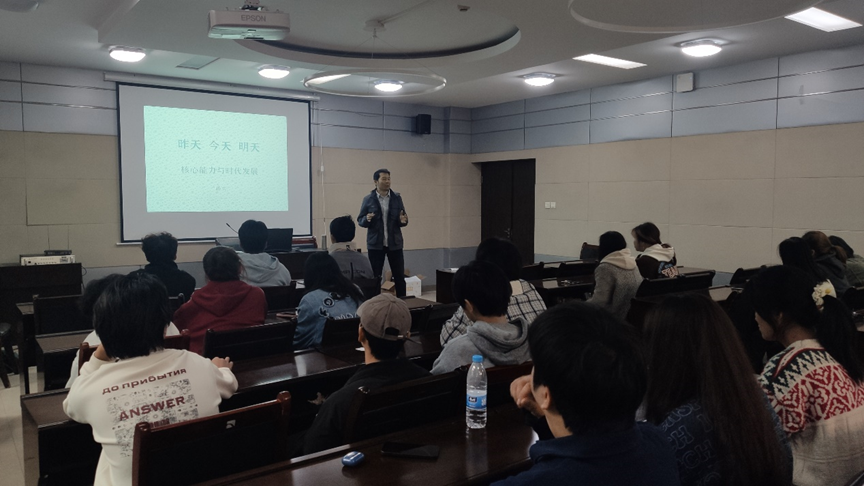 孙勇老师以“昨天,今天,明天”为主题,以自己的亲身经历为切入点,从一个长辈的角度给学生分享了自己的大学经历。随后,他给新生介绍了历届优秀毕业生的学习、就业、职业发展等情况,要求同学们要学会坚持,发挥自己的优势,全面提升自己的能力,以适应不断变化的社会,也希望同学们能够在生活动不断探索,以实现更好的自己。最后,孙老师和同学们进行了互动,让同学们对自己的专业有了更加深入的认识了解,也让同学们有了更加清晰的人生规划。