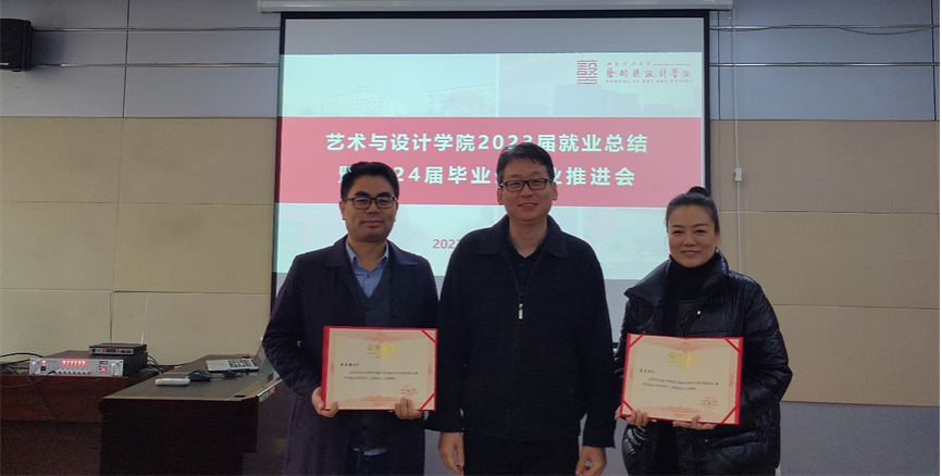 首先,李文英宣读了《关于表彰2023届毕业生就业工作先进集体和先进个人的决定》,授予吉晓民、薛艳敏、孙浩章、王旭鹏、张春强、李元、李博、陈鹏、杜杰、樊荣、魏琰11人“2023届就业工作先进个人”称号,授予视觉传达系“2023届就业工作先进集体”称号。