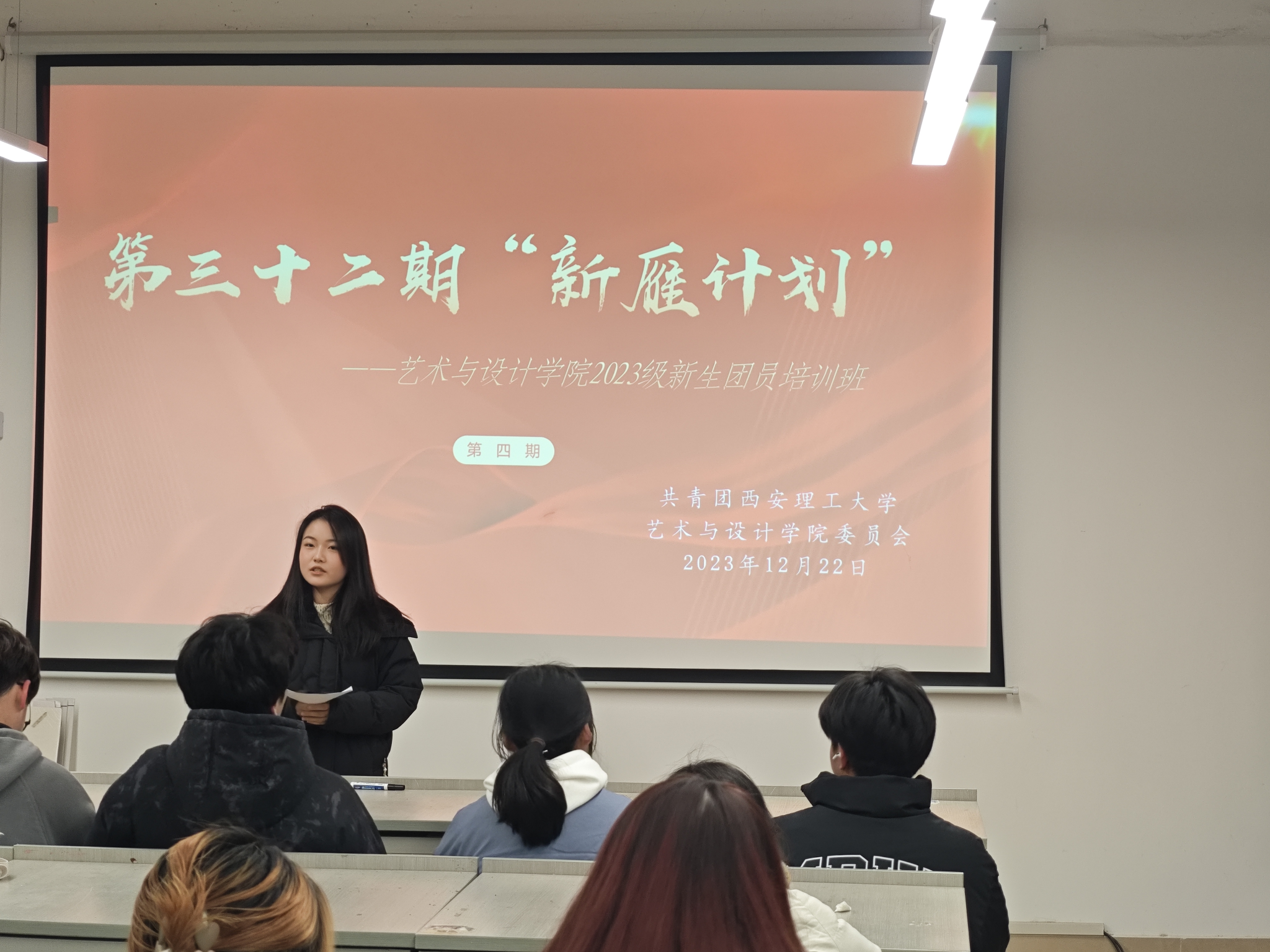 为全面学习贯彻党的二十大精神,十九大精神和习近平总书记系列重要讲话精神,加强我院共青团队伍建设,12月25日下午,永利集团304于逸夫楼401教室开展第三十二期“新雁计划”——2023级新生团员培训班第四期。本次主题教育由院团委负责人赵婷主讲,培训班全体学员参与。