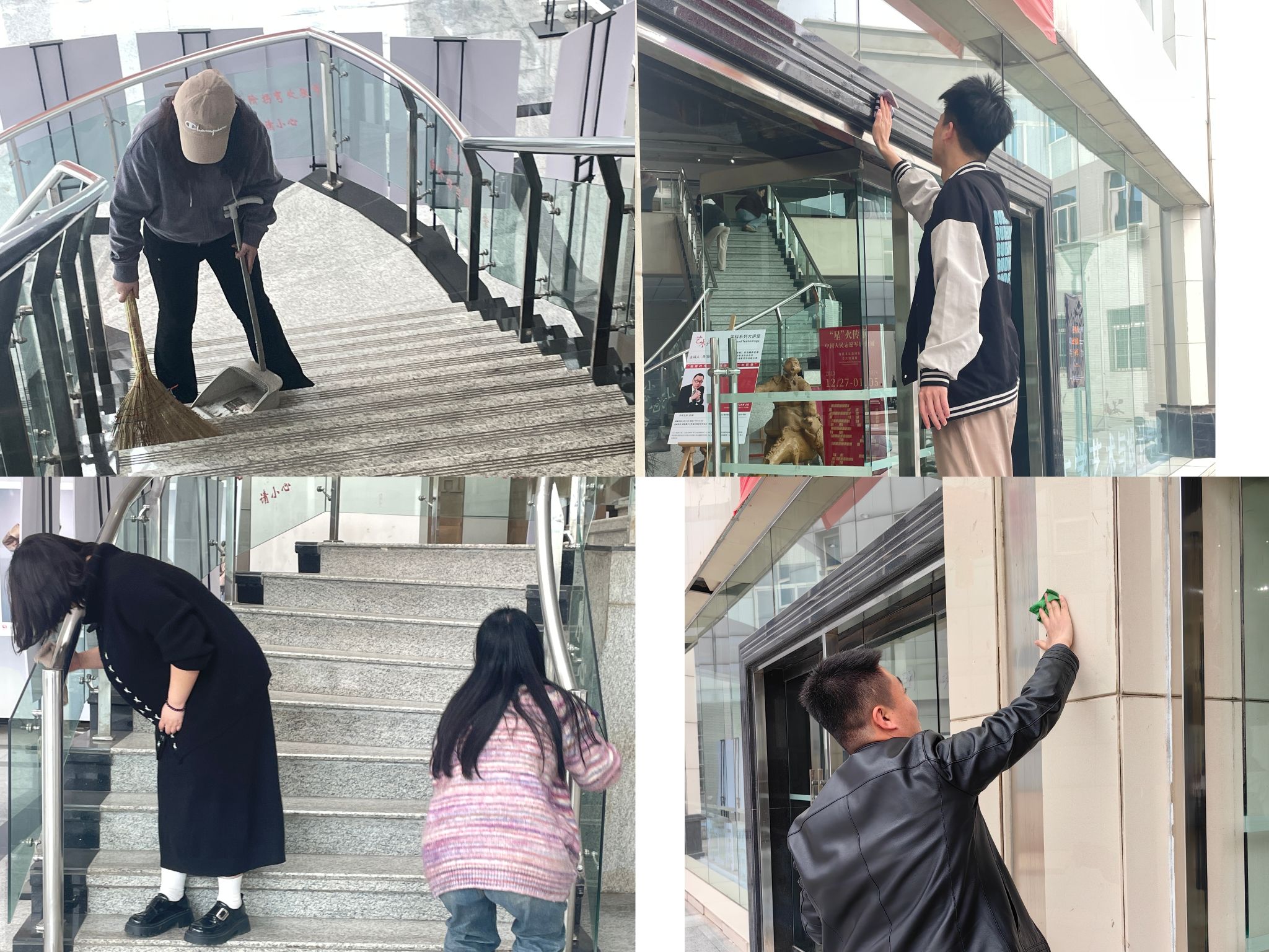 今年是毛泽东等老一辈革命家为雷锋同志题词60周年,60年来,学雷锋活动在全国持续深入开展,雷锋的名字家喻户晓,雷锋的事迹深入人心,雷锋精神滋养着一代代中华儿女的心灵。活动当天,支部全体党员认真仔细、意气风发,对学院一楼的前门玻璃、楼梯扶手等公共区域进行了彻底清扫。他们拿起扫把、拖把,边清理边交流,展现出良好的团队合作精神和积极向上的态度。