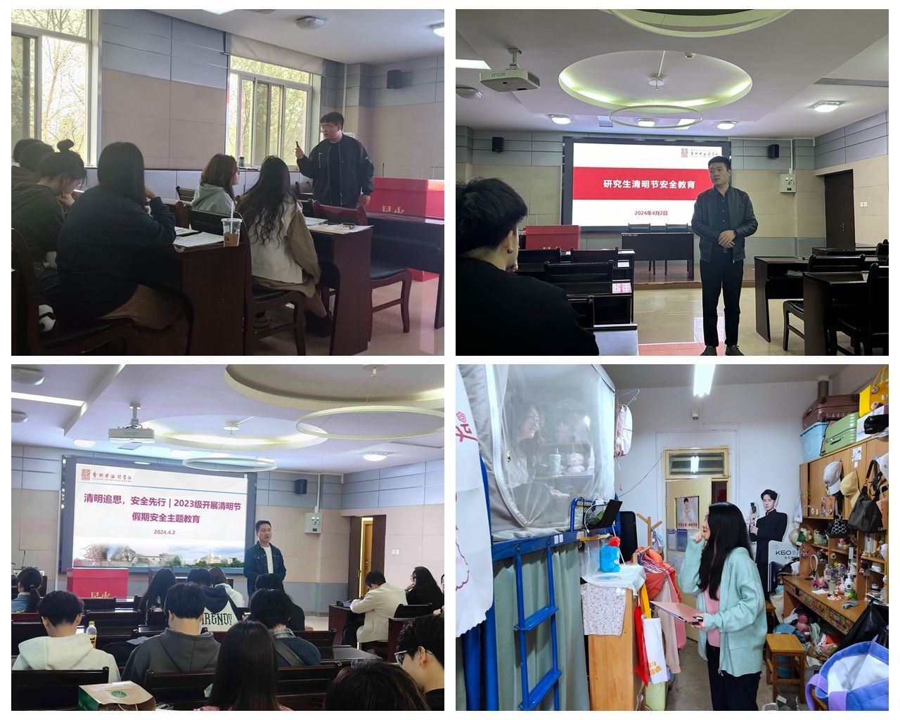 4月1日-2日,各级辅导员主要围绕“防范盗窃、网络诈骗、消防安全、交通意外、财产安全”等方面开展安全教育,通过事故案例、视频播放、数据呈现等形式教育引导学生做人身安全的第一责任人,安全出行,平安返校。
