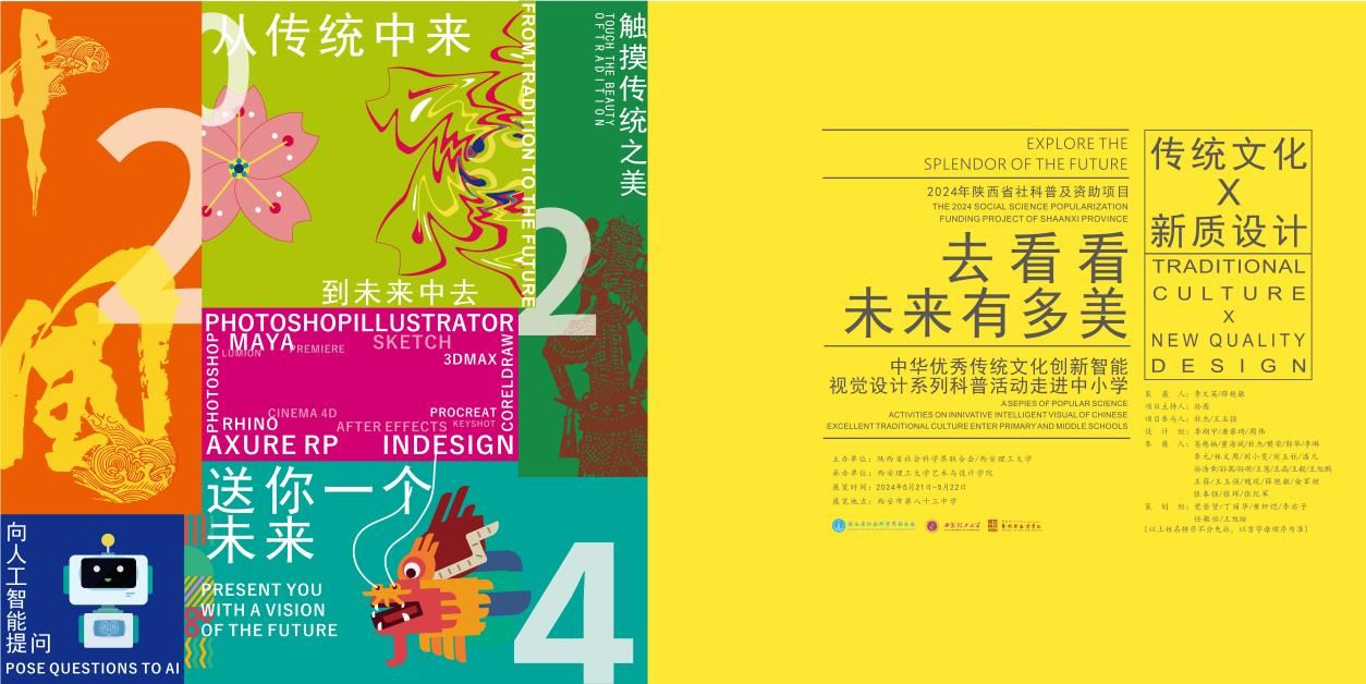 《去看看未来有多美》展览活动由永利集团304孙茜副教授团队主持课题并策划展览,汇集了学院多位教师团队的优秀成果。通过智能视觉设计的创新形式,将中华优秀传统文化的精髓以更加直观、生动的方式呈现给学生们。将传统文化元素与新质设计理念相互结合,传递给学生们最新的设计创意及趋势。