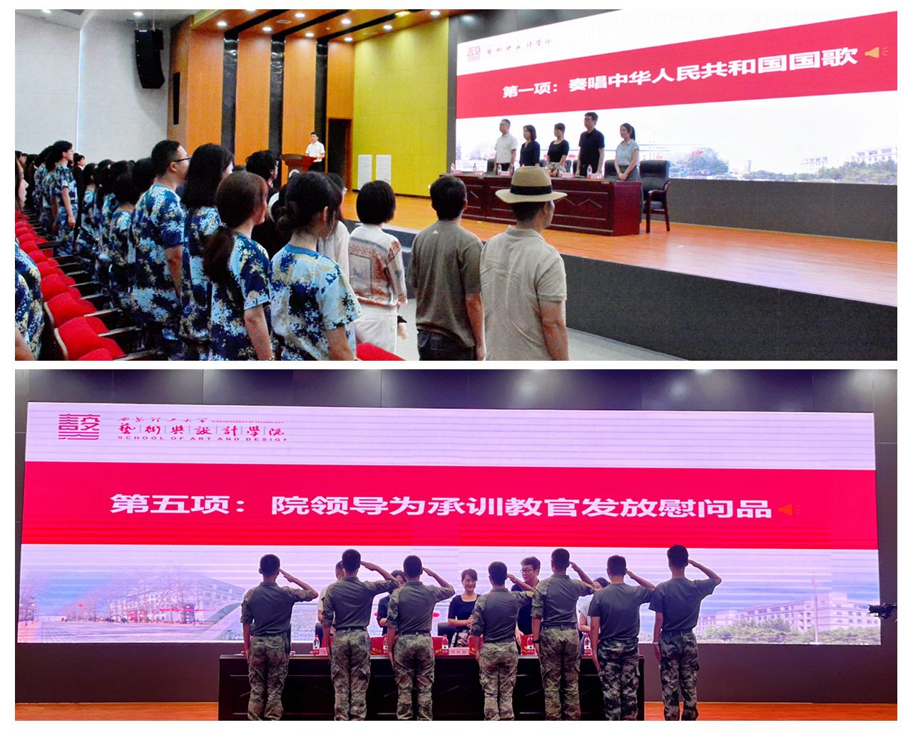 军训慰问会在庄严的国歌声中拉开帷幕。