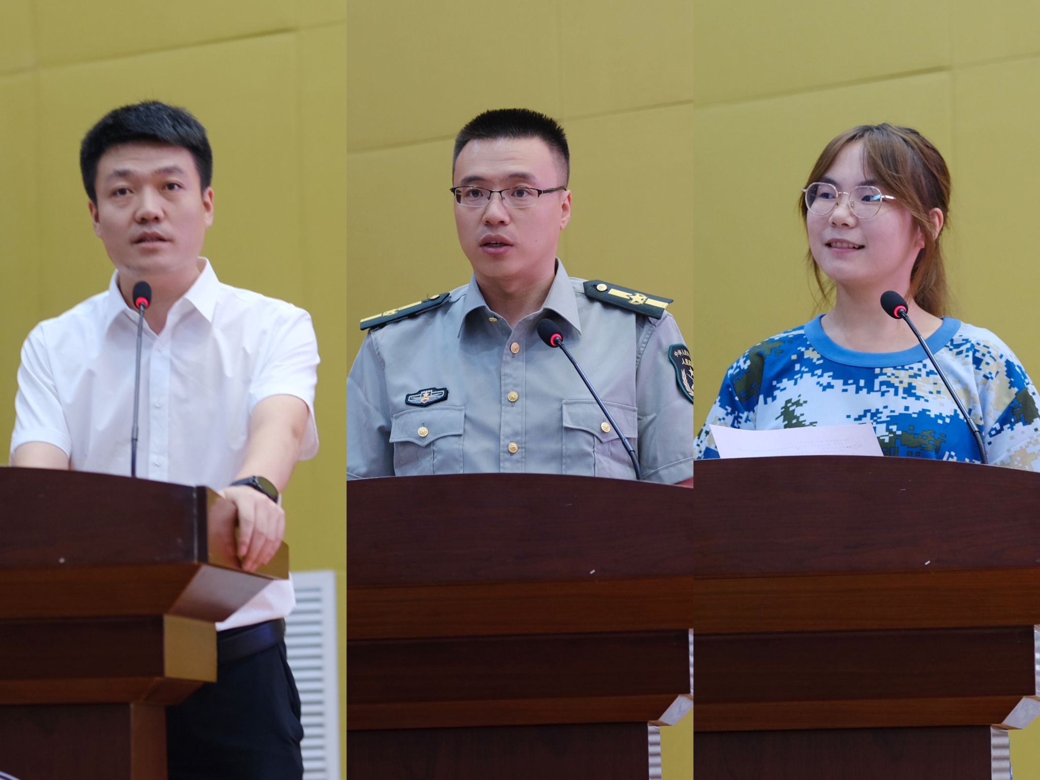 指导员郑昊做军训工作汇报,杨岚清代表2024级本科生发言。随后,学院领导分别为军训教官、指导员和学生代表发放了慰问品。