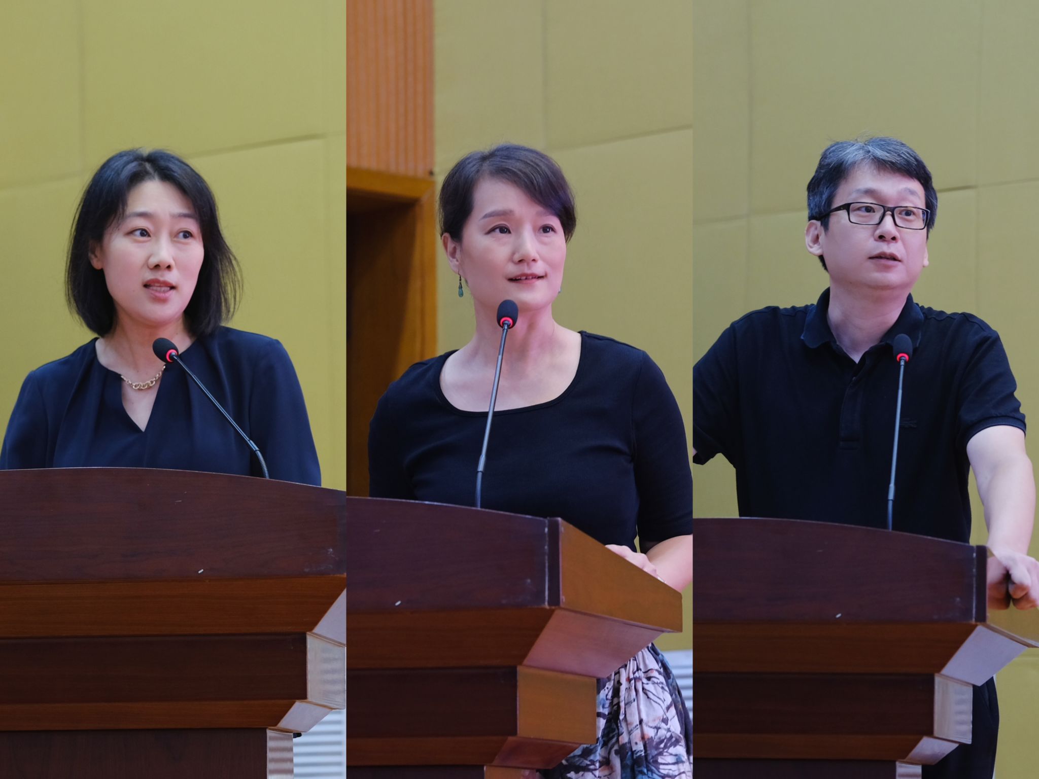 孙浩章做本科教育教学报告。他以学院近年本科毕业设计展主题阐述了学院“艺工同治”的教育理念,并解读了专业分流、转专业等学生关心问题。郑智聪以学生自我管理为核心,讲解了学校的规章制度框架、心理健康、第二课堂等内容。