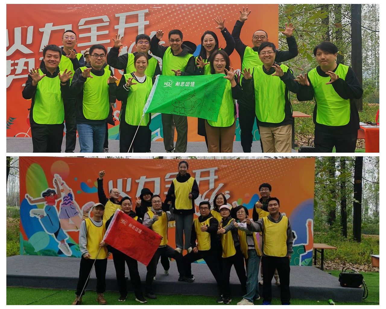 活动中,教职工随机分成两队,在欢声笑语中选定了队长、队名、口号,绘制了队旗。为增添活动趣味性,活动设定了比赛环节,通过比拼得分高的队伍获得胜利。在求胜心的鼓动下,大家认真讨论、激烈交流,通过精心的策划、指挥和完美的协作分工,逐一完成“一圈到底”“急速60秒”“水果连连看”“华山论剑”等多项团队协作项目的比拼。