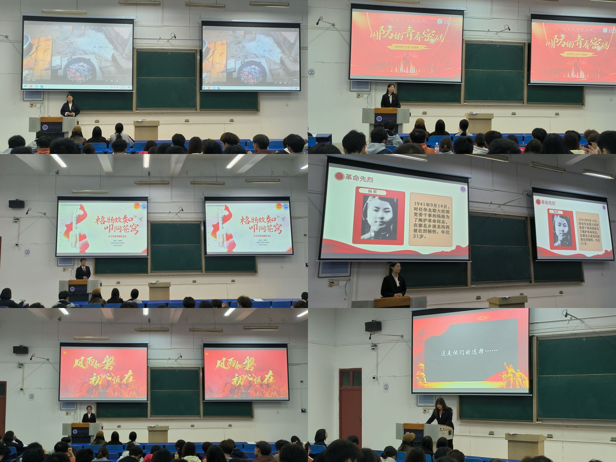 来自“微光”宣讲团的六位优秀学生代表从经济、科技、国防建设等方面让大家更加直观地感受到党的光辉历程和伟大成就。周钰丹以自己家乡为例,以小见大,展先了改革开放对中国的巨大改变;李懿婷结合自己对国防的深刻理解和亲身经历,回答了“国防为何重要?青年应如何支持国防建设?”的时代之问;夏章成以《中国梦,航天梦》为主题呼吁时代青年应从航天精神中汲取力量,自觉将青春同党和人民事业高度结合起来;张盛楠深入通过分享先锋事迹,鼓励同学们在日常生活乃至国家建设中绽放青春的光彩;徐睿以优秀共产党员张顺德为例讲述了新时代青年要不忘初心、牢记使命,用实际行动践行共产党员的初心使命;孙诗雨以追星青年韩佳龙为例鼓励艺设学子发挥专业优势,将个人前途命运和强国建设结合,在实现民族复兴伟业中挺膺担当。