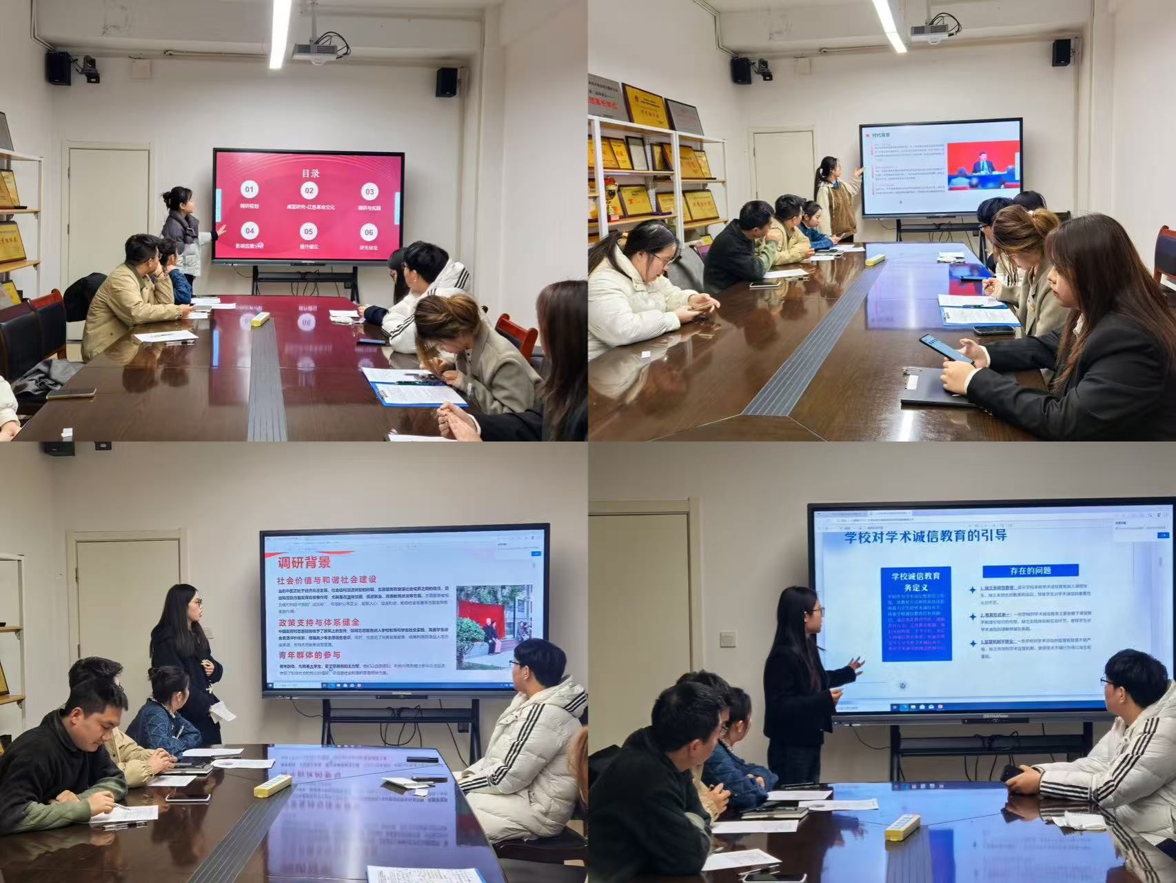考核过程中,各小组代表依次通过精心制作的PPT向大家汇报交流了调研实践成果。调研内容包涵大学生对红色文化的了解、大学生学术诚信现状、志愿服务开展情况等多个方面。各小组通过问卷调查、数据分析等方式,对调研主题进行了深入细致的研究,不仅体现大学生入党积极分子敏锐的观察力,更体现了作为新时代青年的责任感和使命感。