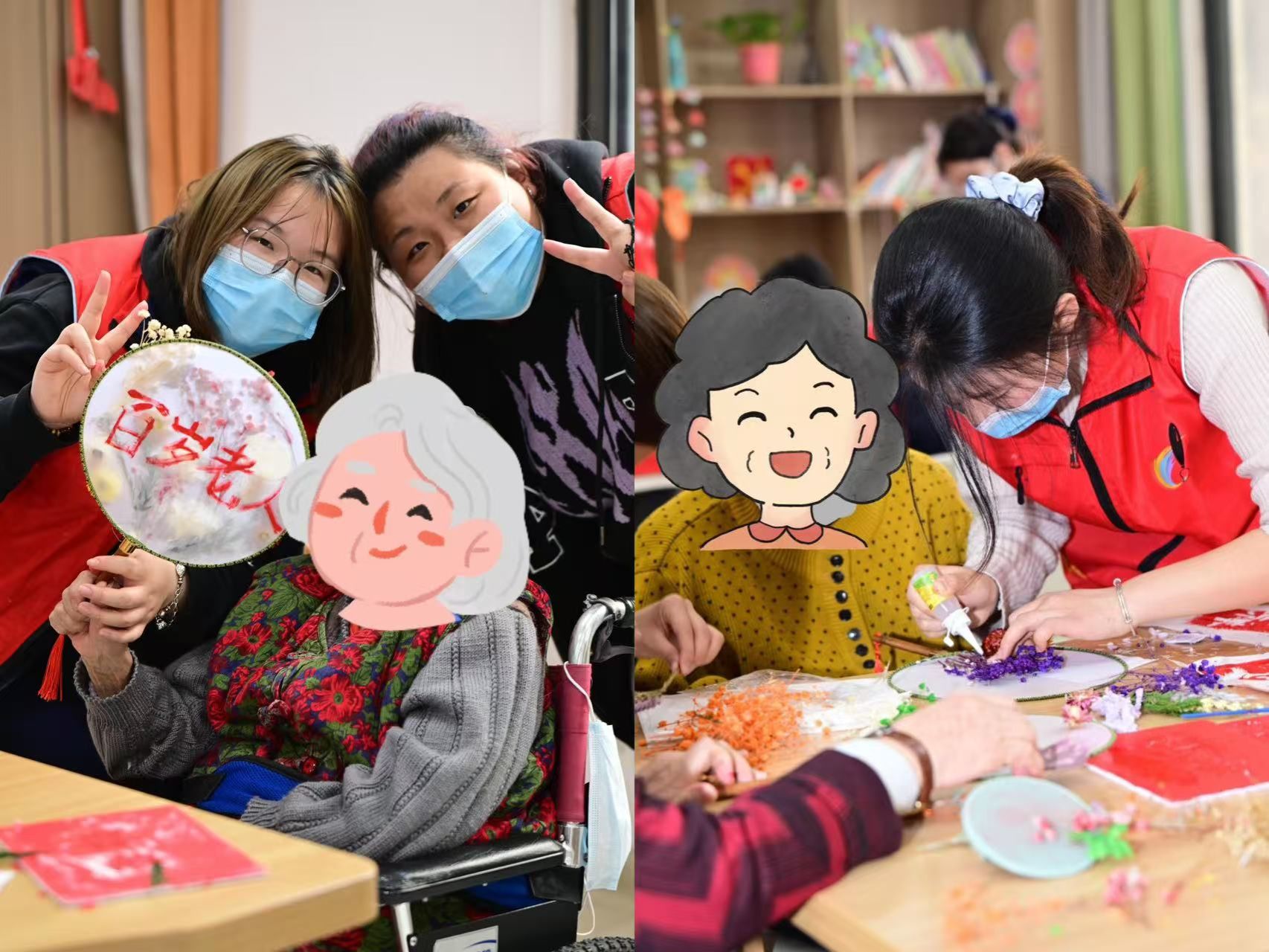 活动中,志愿者们围坐在老人身旁,耐心倾听他们讲述往昔岁月的故事,关切询问老人的生活与健康状况;随后的文艺表演将活动推向高潮,音乐声起,志愿者们各展才艺,每一个节目都饱含着志愿者们对老人的关爱与祝福,赢得了老人们的阵阵掌声;紧接着,开展了手工体验活动,老人们在志愿者的帮助下,进行拓印和干花团扇的制作,看着自己参与完成的作品,满是新奇与欣喜,现场氛围温馨而融洽。