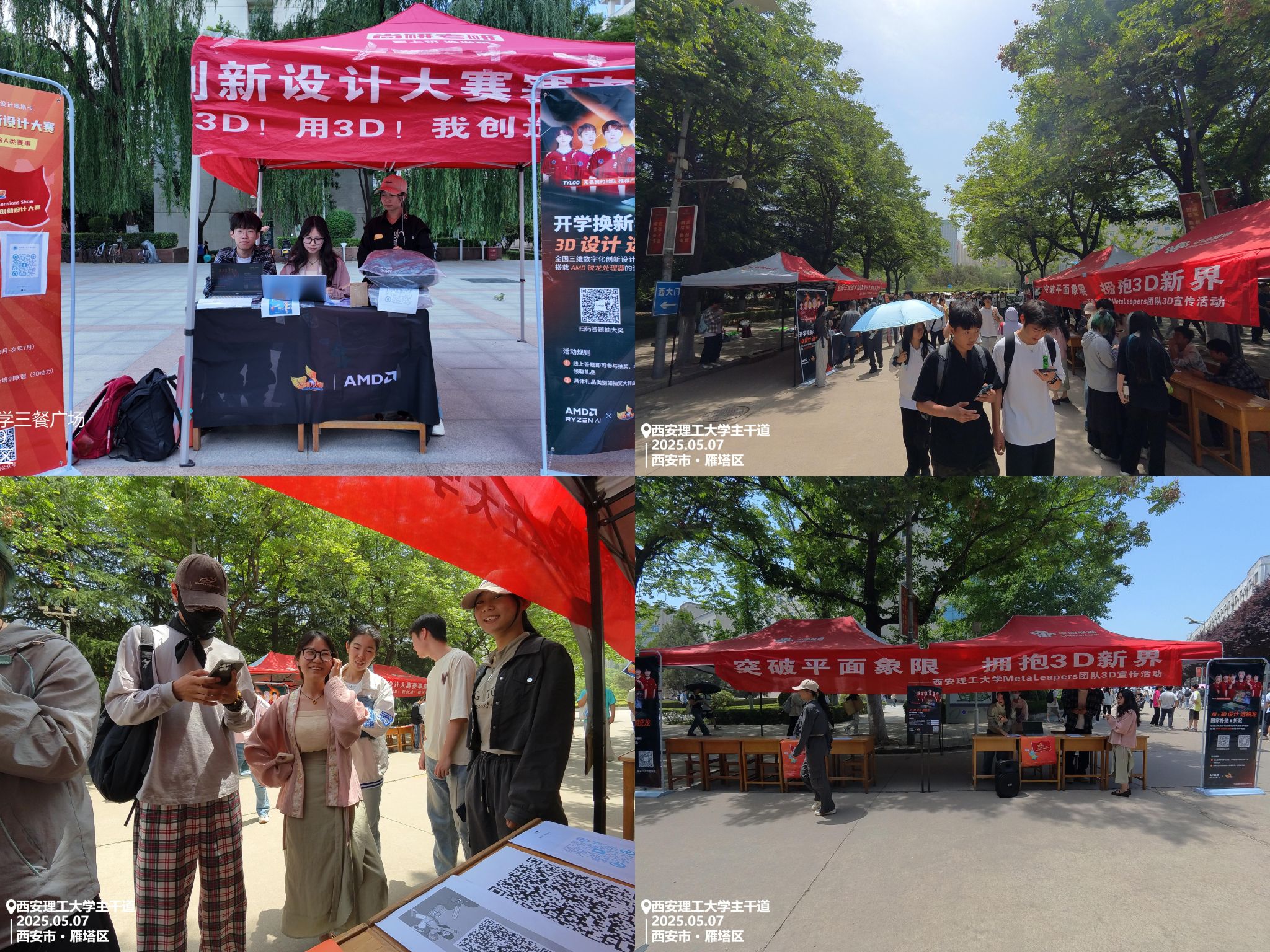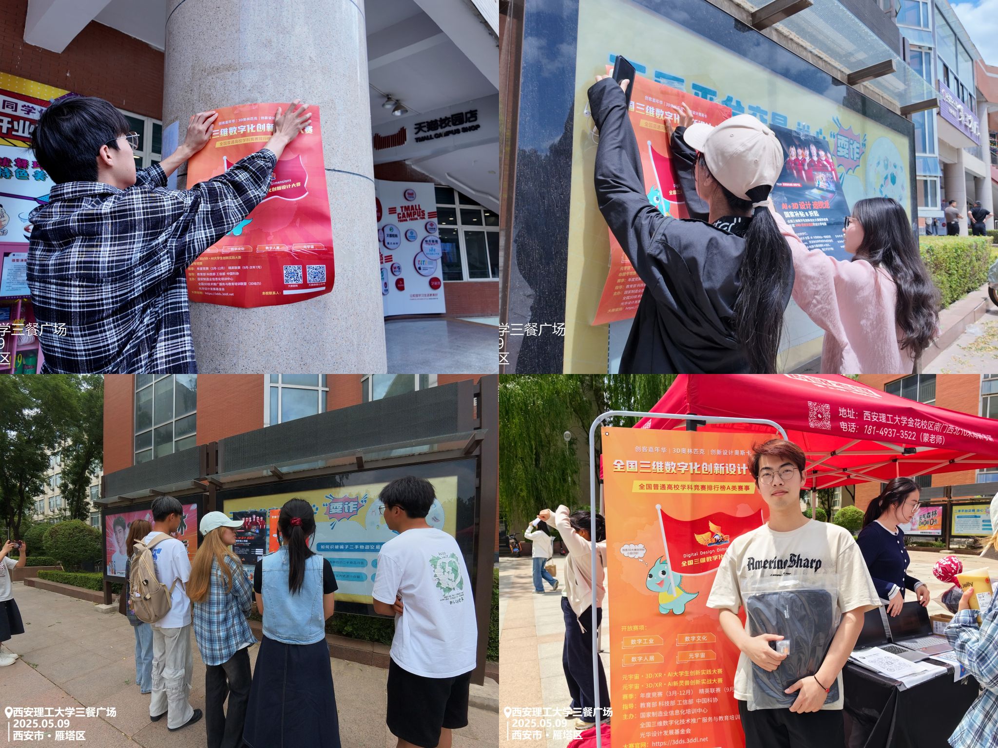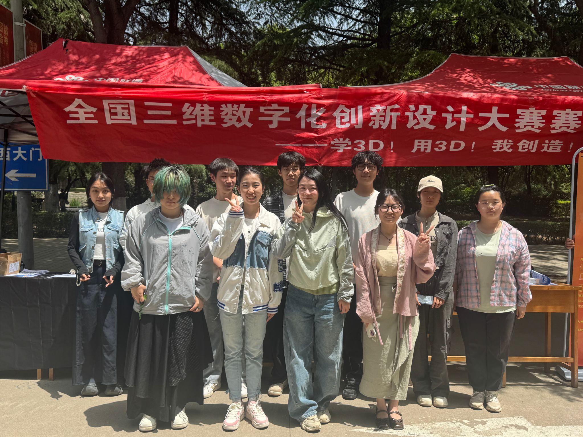 为响应数字经济发展需求,培养创新型数字技术人才,近日,艺术与设计学院在曲江校区举办了第18届全国三维数字化创新设计大赛(简称“3D大赛”)校园宣传活动。我院参赛队伍指导老师与全体成员参与了本次活动。