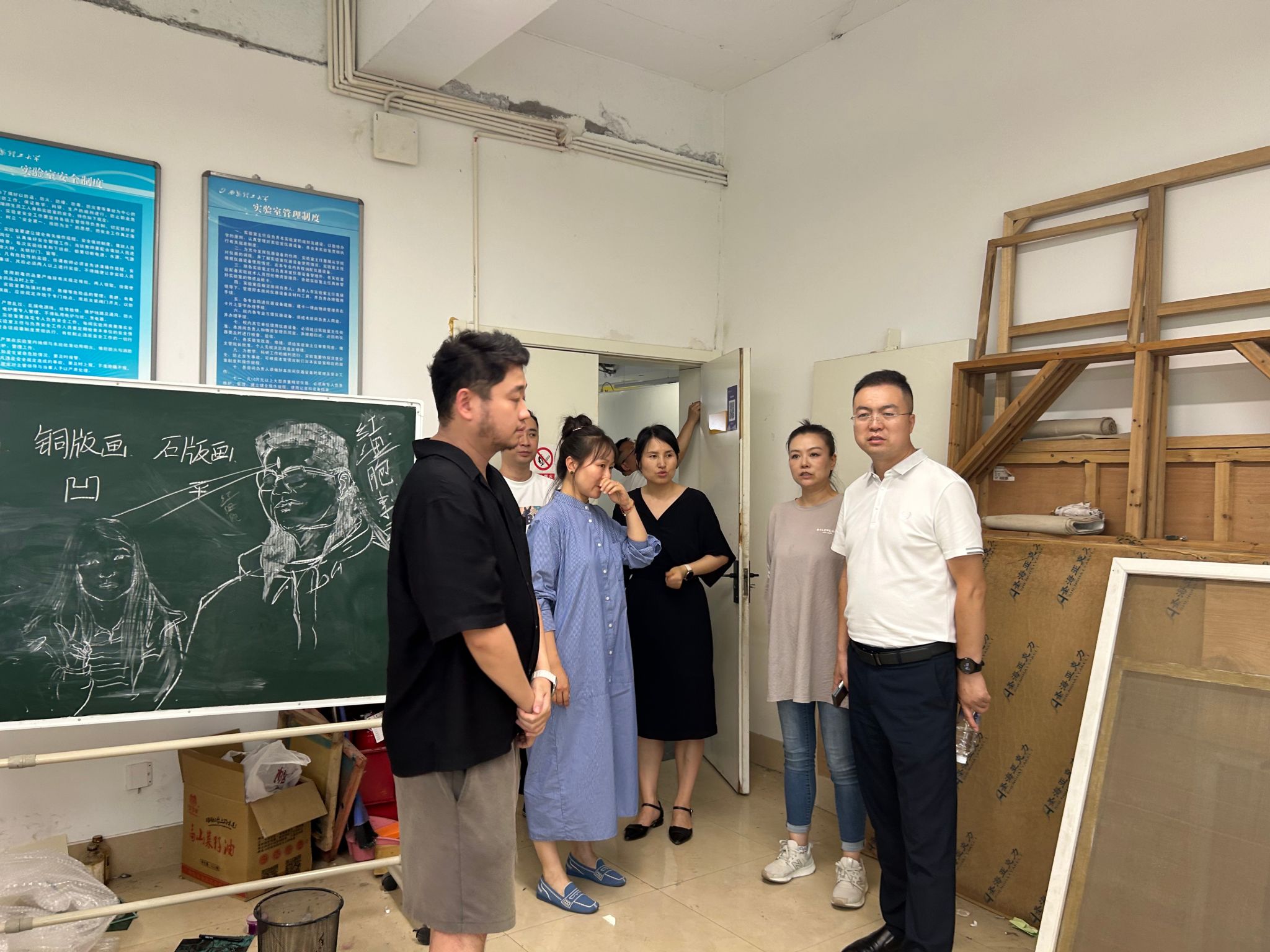 本次检查依次对工业设计系实验室、环境设计系实验室、视觉传达系实验室以及雕塑小院等多个实验室教学场所进行了排查,重点检查了用电设备、消防设施、教学用具管理等安全要点。在检查过程中,院领导仔细询问了实验室设备的使用情况和日常维护流程,对发现的安全隐患提出了具体整改要求,并强调要严格落实实验室安全管理制度,确保师生人身安全和教学工作的顺利开展。