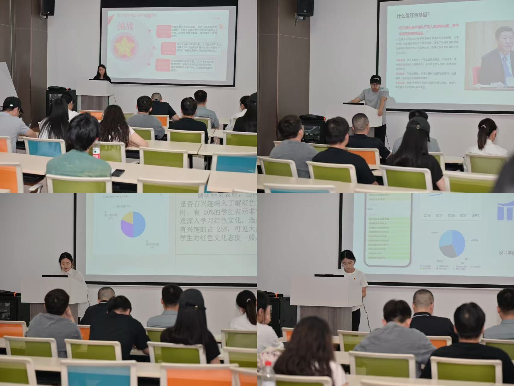 答辩分11个小组进行,每组选派1名代表做现场汇报,调研选题涵盖预备党员培训、学生就业、红色文化传承等多个方面。答辩代表分别从选题背景意义、调研方法、调研结果和意见建议等方面展开,从志愿服务过程分享到实践感悟提炼,全方位展示了实践内容,有力印证了他们在实践中的深入思考与积极探索,充分展示了调研实践成果。