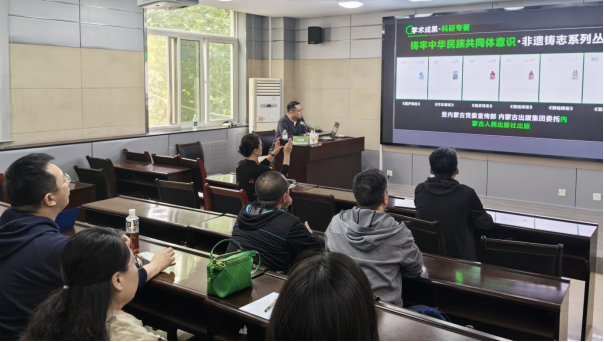 王赫德教授以《牧歌不落:中国北疆传统技艺——当代守望者》为题,结合其主持的国家艺术基金2025年度传播交流推广资助项目《共铸中华:内蒙古特色工艺美术作品巡展》的申报实践,围绕“项目选题与依据”“项目价值与意义”“项目特色与亮点”等关键维度展开系统讲解。他立足“艺术+科技”融合视角,深入阐释如何在坚守中华文化立场的基础上,以创新表达赋能传统技艺的当代传播,为我院教师拓展了跨学科研究的思路与方法。