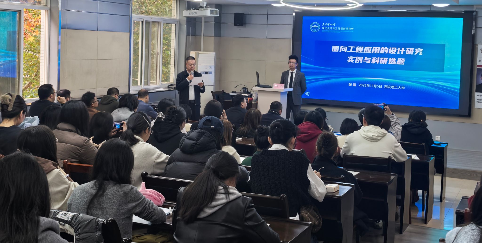 张磊副教授以《面向工程应用的科研选题与设计研究实例》为主题,系统阐释了科研目的与目标的设定、广义科研与狭义科研的范畴差异,以及科研选题与论文选题的基本原则、思路形成、可行路径与具体方法。他结合机械工程与艺术设计融合的学科背景,深入剖析了如何根据学科特色凝练具有创新性与应用前景的科研选题,并进一步挖掘其学术价值与工程实践潜力。