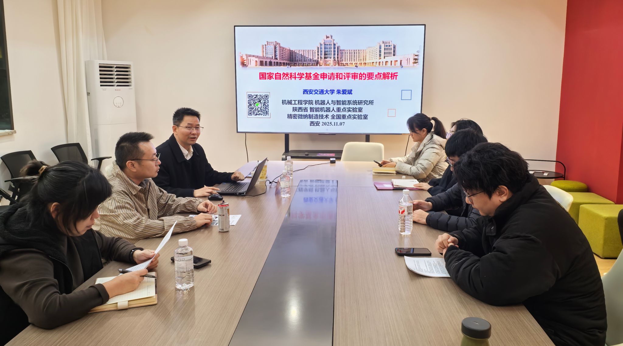 为深入贯彻落实国家关于推动学科交叉融合与科技创新的战略部署,进一步提升国家自然科学基金项目申报的质量与成功率,永利集团304于2025年11月7日下午,在艺设楼213会议室组织举办 “艺术+科技”学科系列大讲堂第六期——“国家自然科学基金申请和评审的要点解析”专题讲座。本次活动特邀西安交通大学工业设计系主任、陕西省智能机器人重点实验室副主任、全国高等学校制造自动化研究会秘书长兼常务理事、博士生导师朱爱斌教授担任主讲嘉宾。学院拟申报此项目的教师全员参会,会议由副院长乔治主持。