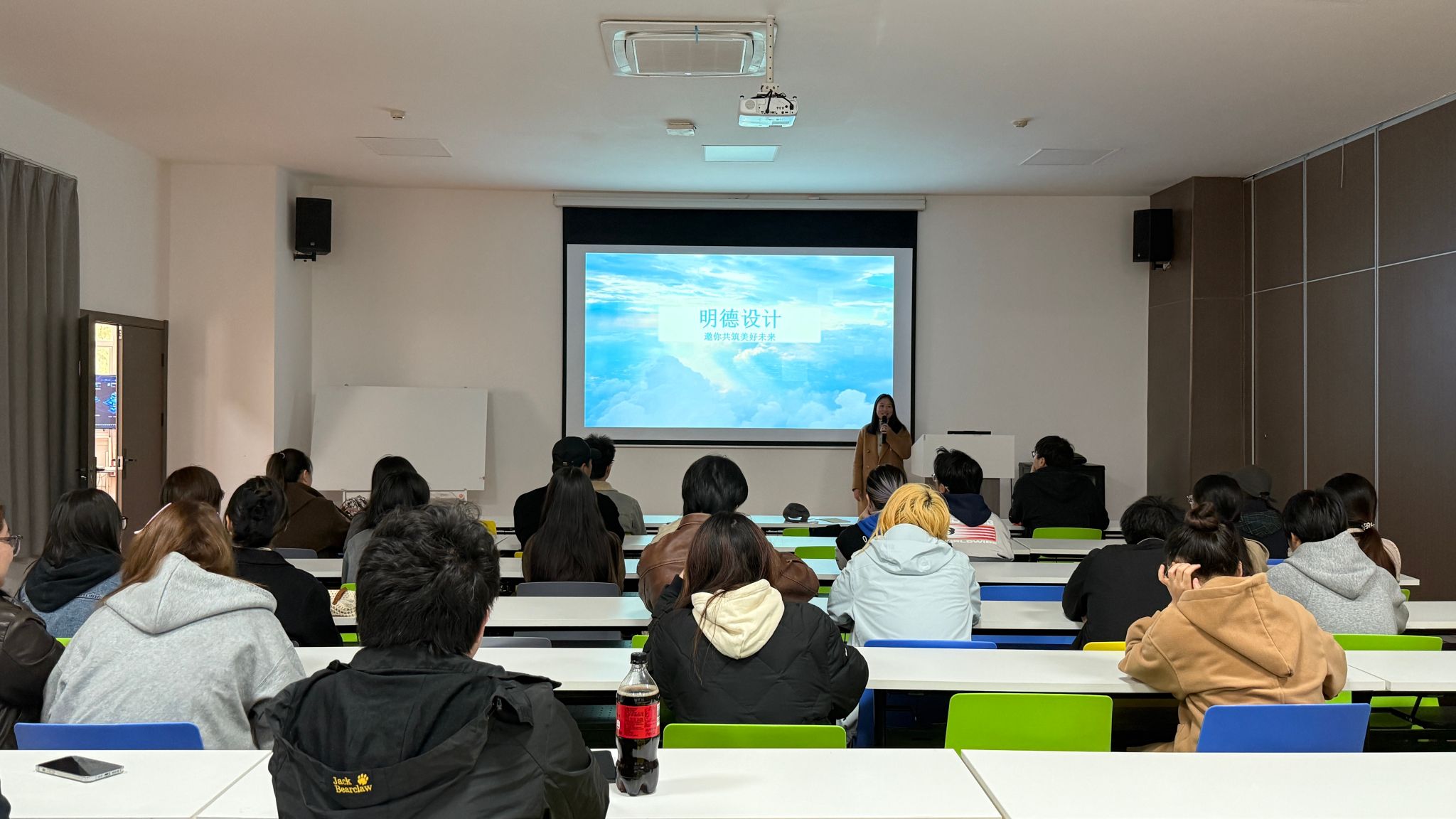 宣讲会伊始,明德设计负责人通过一段精彩的宣传片,向在场同学展示了公司的深厚底蕴与设计理念;对于同学们最关注的招聘岗位环节,负责人进行了详尽介绍,涵盖硬装设计、软装设计、施工图设计等十余个岗位,为同学们提供了广阔的才华施展平台;随后,负责人从投递简历及作品集,到基础技能测试,再到面试,清晰地说明了招聘流程;宣讲会的最后,同学们就岗位具体要求、职业发展路径、公司培训体系等问题积极提问,现场气氛热烈。