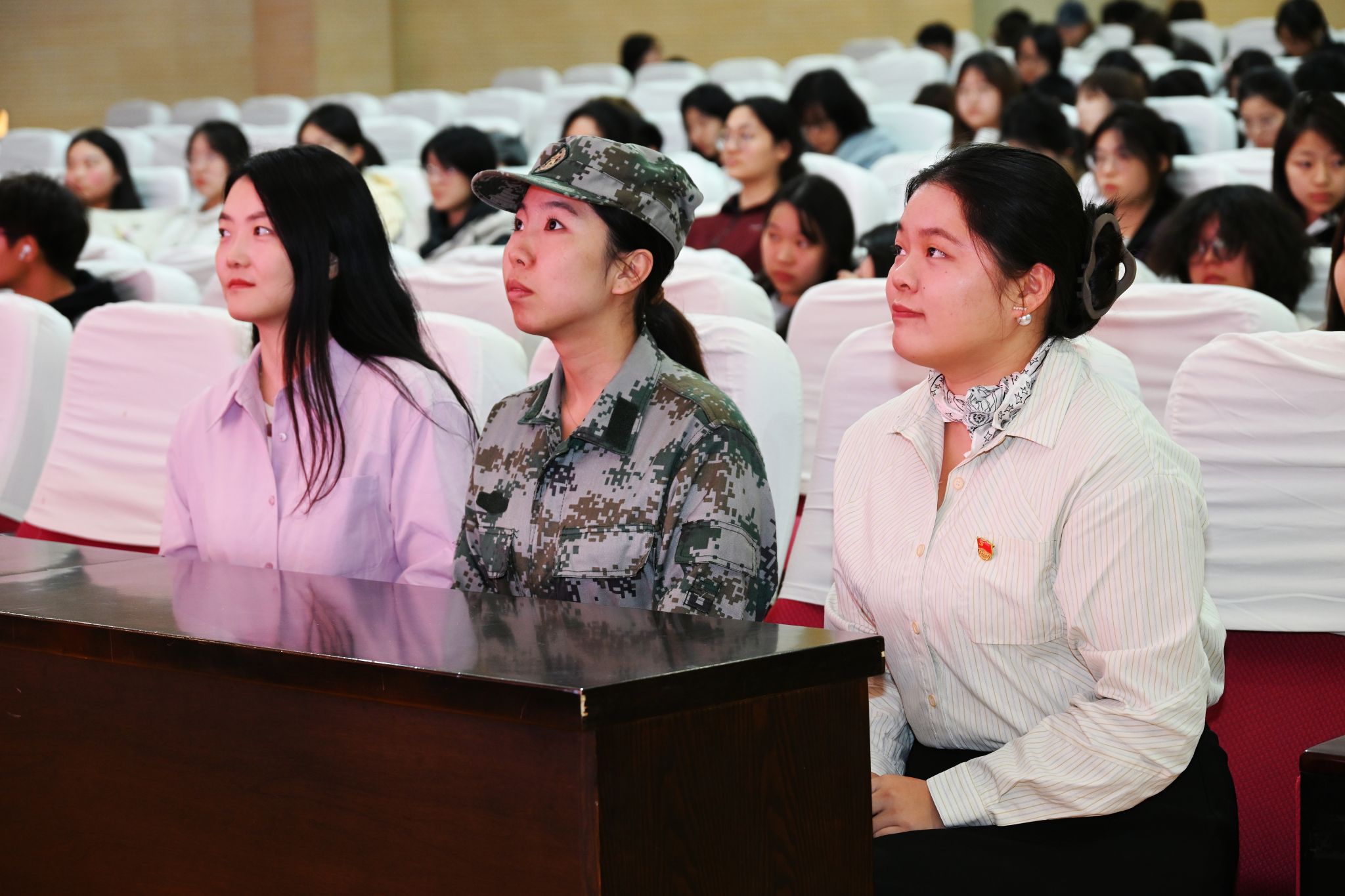 李晨雨以“答案是兴淳塔旁扑面而来的凛冽的风”为题,分享了她在咸阳市淳化县支教的生动故事;胡瀛、徐其煜以“报效祖国 建功西部”为题,分享了他们在新疆维吾尔自治区尤库日伊什塔其小学的学习生活;郭旭东以“青春融入使命 报国挺膺担当”为题,就大学生参军入伍的要求及政策进行了详细解读。