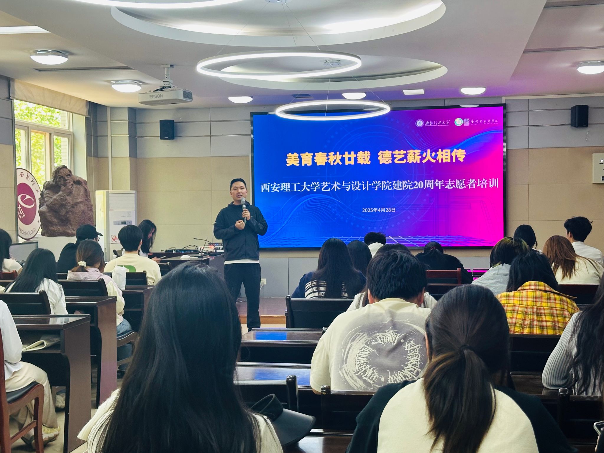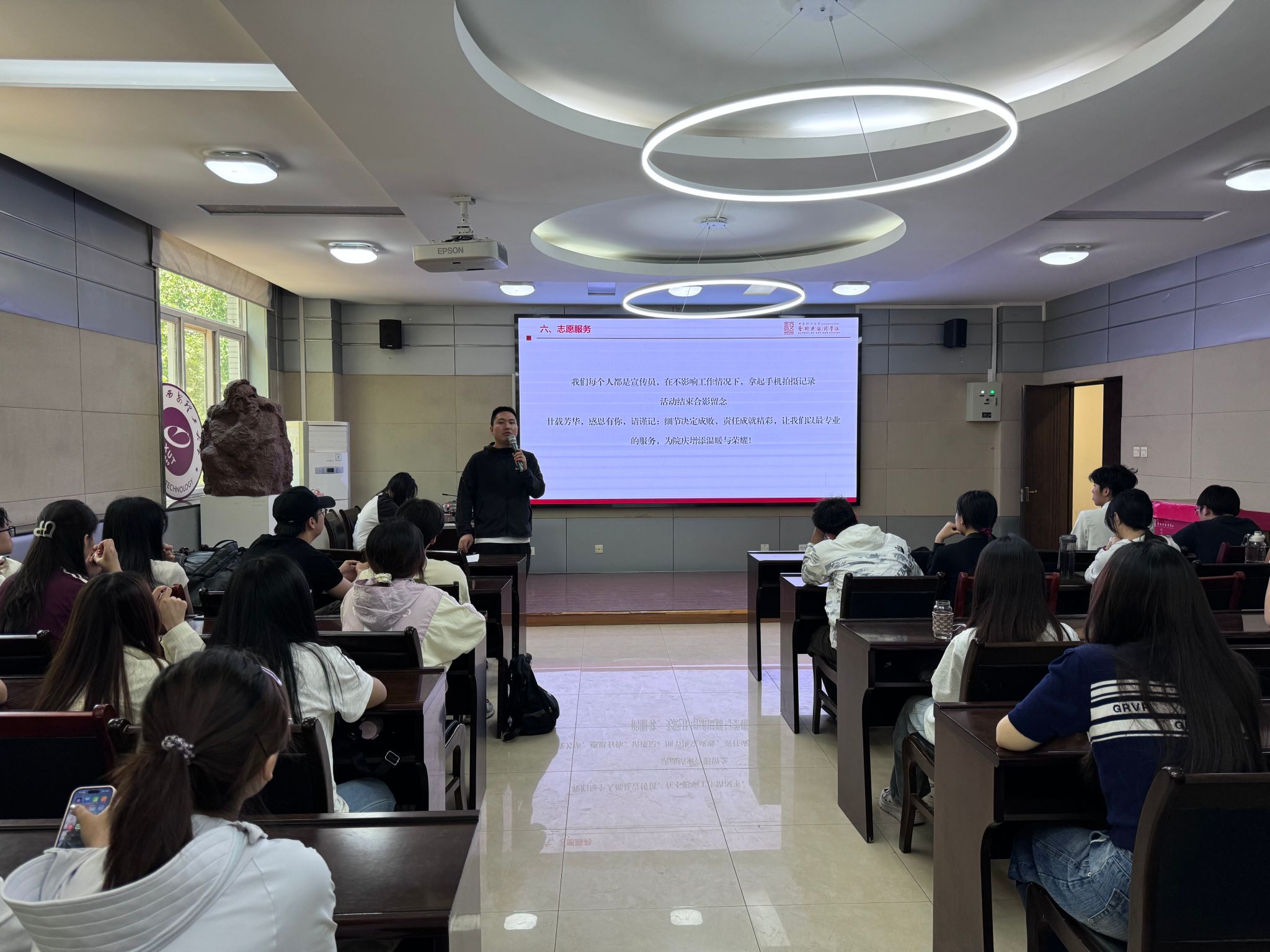 培训会上,李铮铮从志愿服务规范、应急处理、形象塑造三个维度展开指导。他指出,志愿者应秉持"奉献、友爱、互助、进步"的志愿服务精神,以阳光向上的精神面貌展现艺设学子风采。提醒志愿者在接待校友嘉宾、引导参观等环节要做到举止得体、言语文明。面对突发状况,他系统梳理了“预判-响应-反馈”全方位应对流程,通过历届庆典典型案例的情景模拟,生动诠释了志愿者作为“学院形象窗口”的责任与担当。